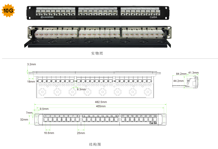 超六类配线架采用超模块化免打线设计,满足或优于现行的超六类传输标准,符合万兆以太网应用系统,性能超越超六类550MHZ连接硬件指标,适用于设备间的水平布线、设备以及集中点的互配端接