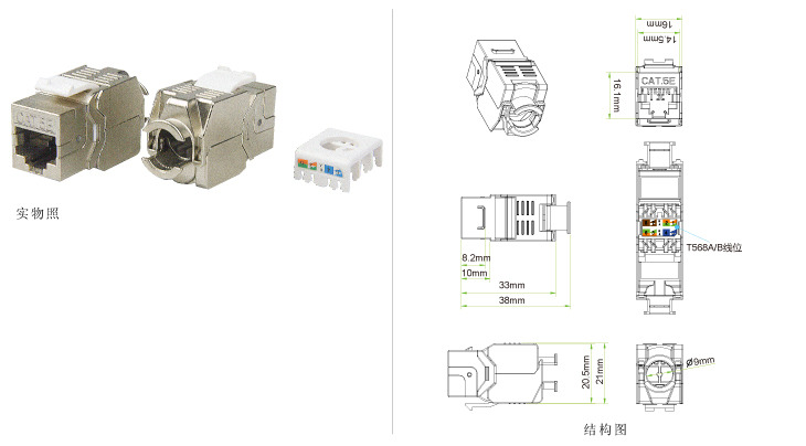 具备T568A和T568B两种通用线序,通用线序标签清晰标注于模块上