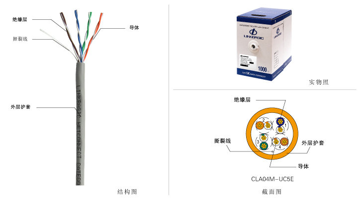 CLA04-UC5E | 超五类4对非屏蔽双绞线 | 24AWG | RAL7004 | 箱 | 305m(1000ft) | 53cm× 31cm × 23cm | 9.40KG |